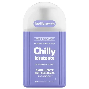 Chilly Idratante Emolliente Anti-Secchezza. Arricchito con Glicerina, nota per le sue proprietà emollienti per migliorare l’idratazione delle mucose donando nutrimento e rapido sollievo anche in caso di secchezza intima.Potenziato con molecola anti-odore che neutralizza la formazione dei cattivi odori e ne riduce la formazione grazie all’azione antibatterica.