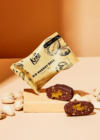 Energy Ball Pistacchio bio KoRo . La combinazione di pistacchio, dattero e cacao non lascia nulla a desiderare e fa ballare la macarena le papille gustative. La pallina da 30 g può essere riposta perfettamente nella borsa dello sport, del lavoro o della spesa ed è sempre a portata di mano.
