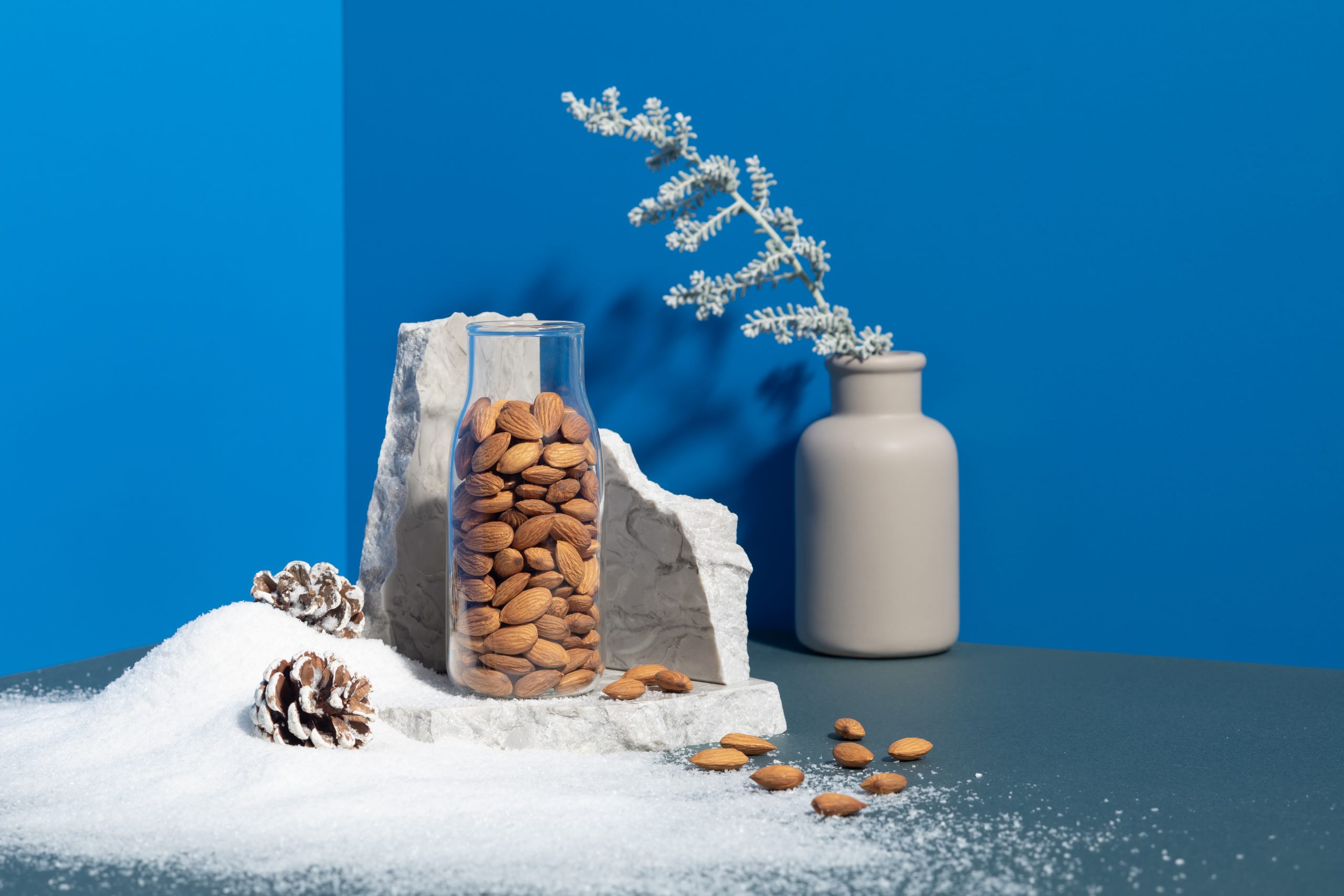 Le mandorle sono lo snack ideale per gli amanti degli sport invernali. Una porzione di mandorle (circa 23 mandorle o 30 g) fornisce 175 calorie, 6 grammi di proteine vegetali, 4 g di fibre, 13 g di grassi insaturi, solo 1 g di grassi saturi e 15 nutrienti essenziali. Una combinazione che le rende un ottimo carburante per il benessere. In grado di fornire energia a rilascio prolungato. Le mandorle sono anche ricche di magnesio – noto per ridurre la stanchezza e l’affaticamento. E forniscono vitamine del gruppo B (B2, B3, B1), tutte fondamentali per il metabolismo energetico.