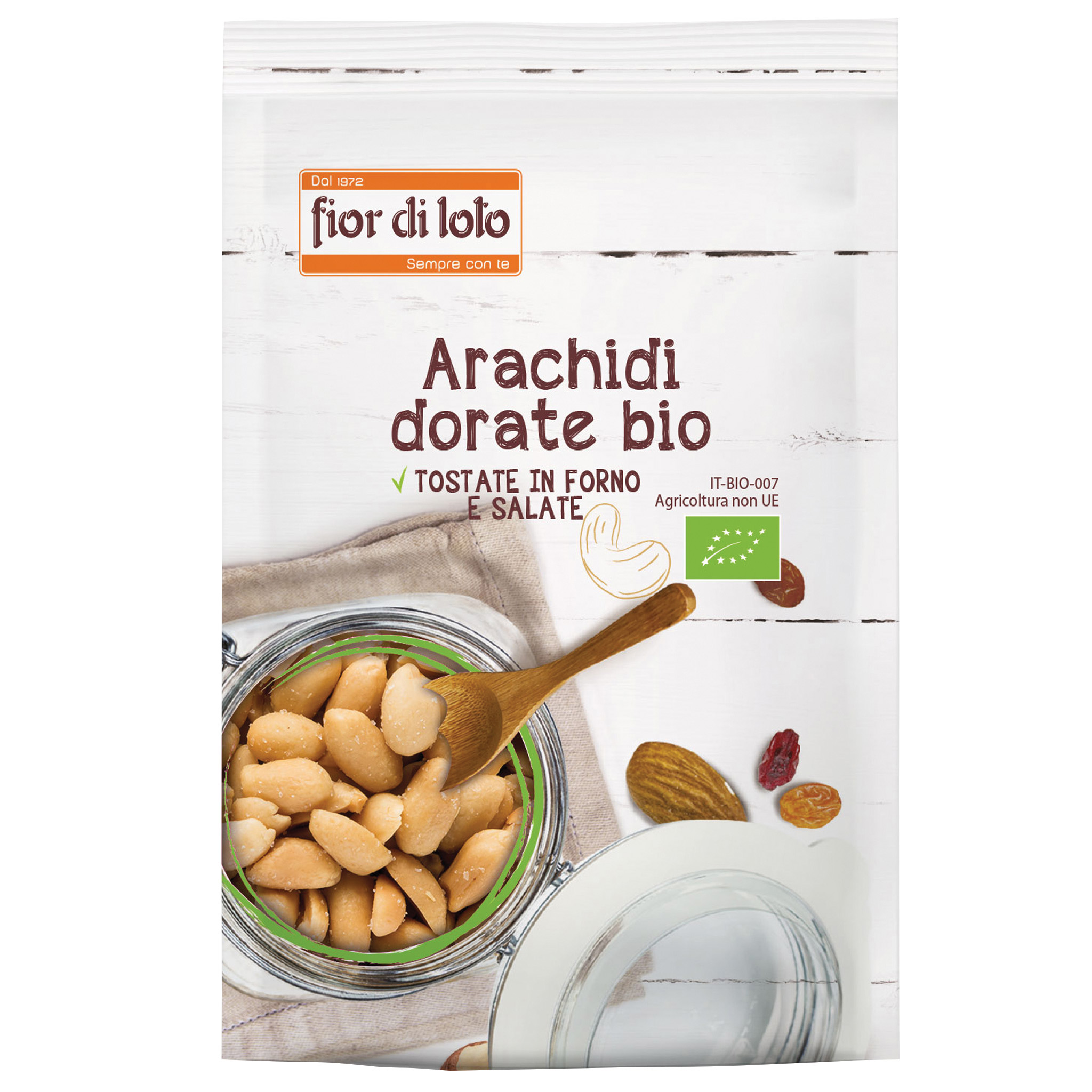 Arachidi dorate bio Fior di Loto sono lo snack on-the-go da tenere sempre in borsa per ricaricare le energie. Biologiche, tostate in forno e leggermente salate sono perfette per dare un twist di sapore in ogni momento della giornata. Proposte in due formati (70 g e 200 g), sono un pieno di energia e gusto in modo naturale. Regalano ogni volta la fragranza e il gusto autentico delle arachidi, con la qualità biologica che contraddistingue il brand.